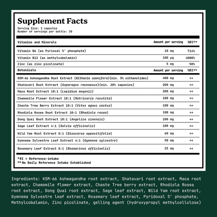 Helps balance stress hormones, easing PMS and menopausal symptoms**