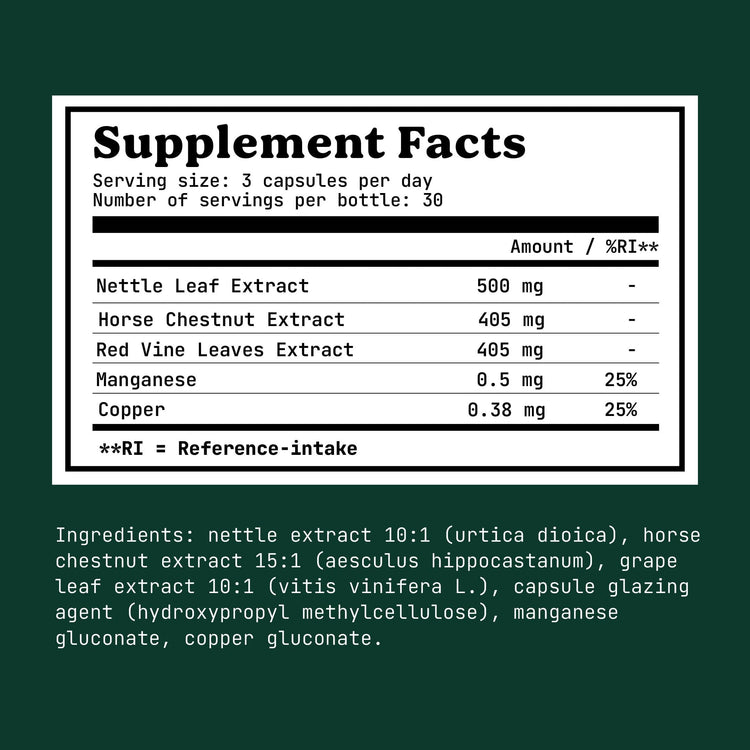 Supports healthy veins, improves blood circulation, and provides antioxidant protection
